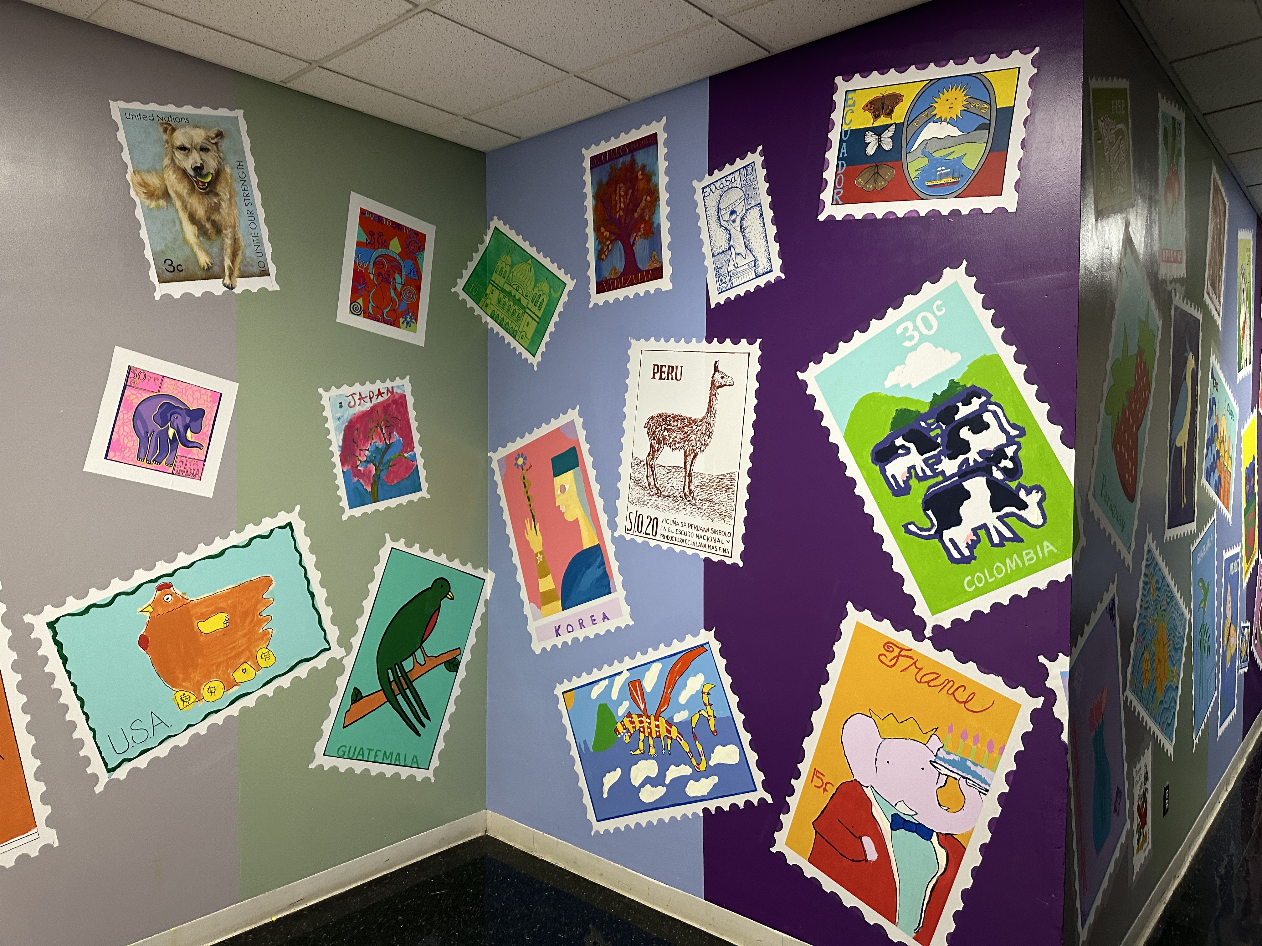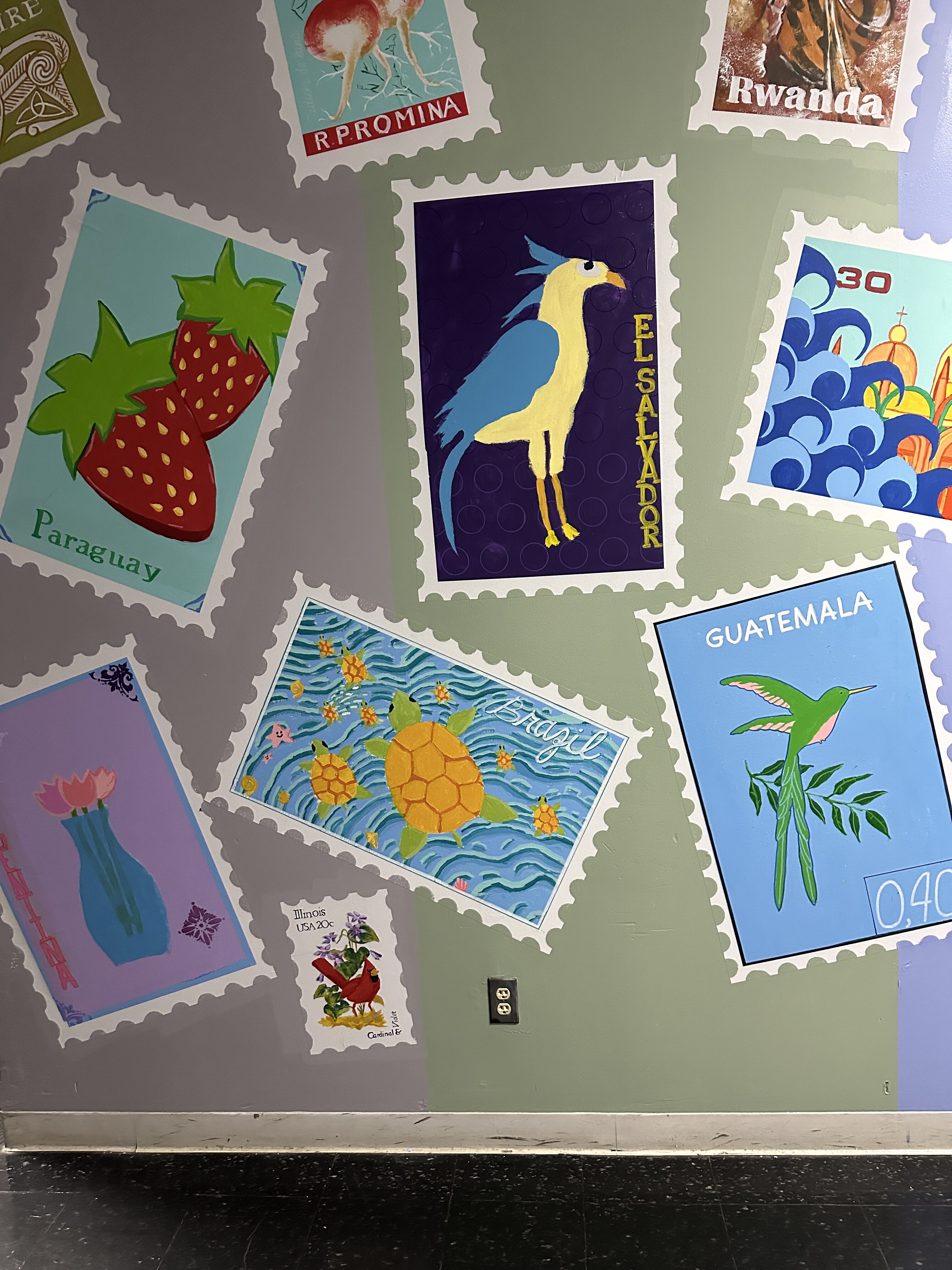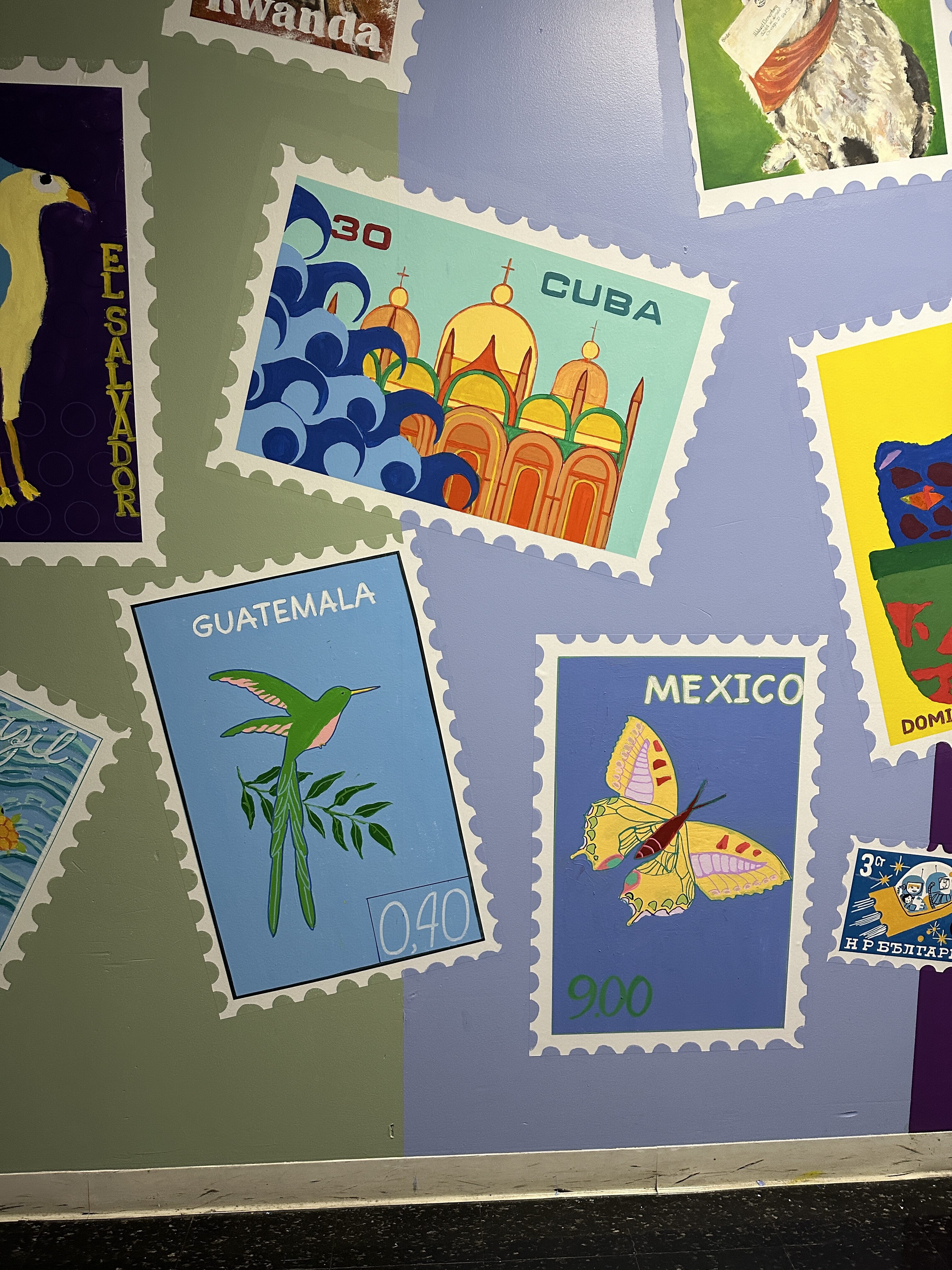 Hibbard Students paint a world mural in their school hallway with the guidance of @CydSmillie and teaching assistant Kaity Young.