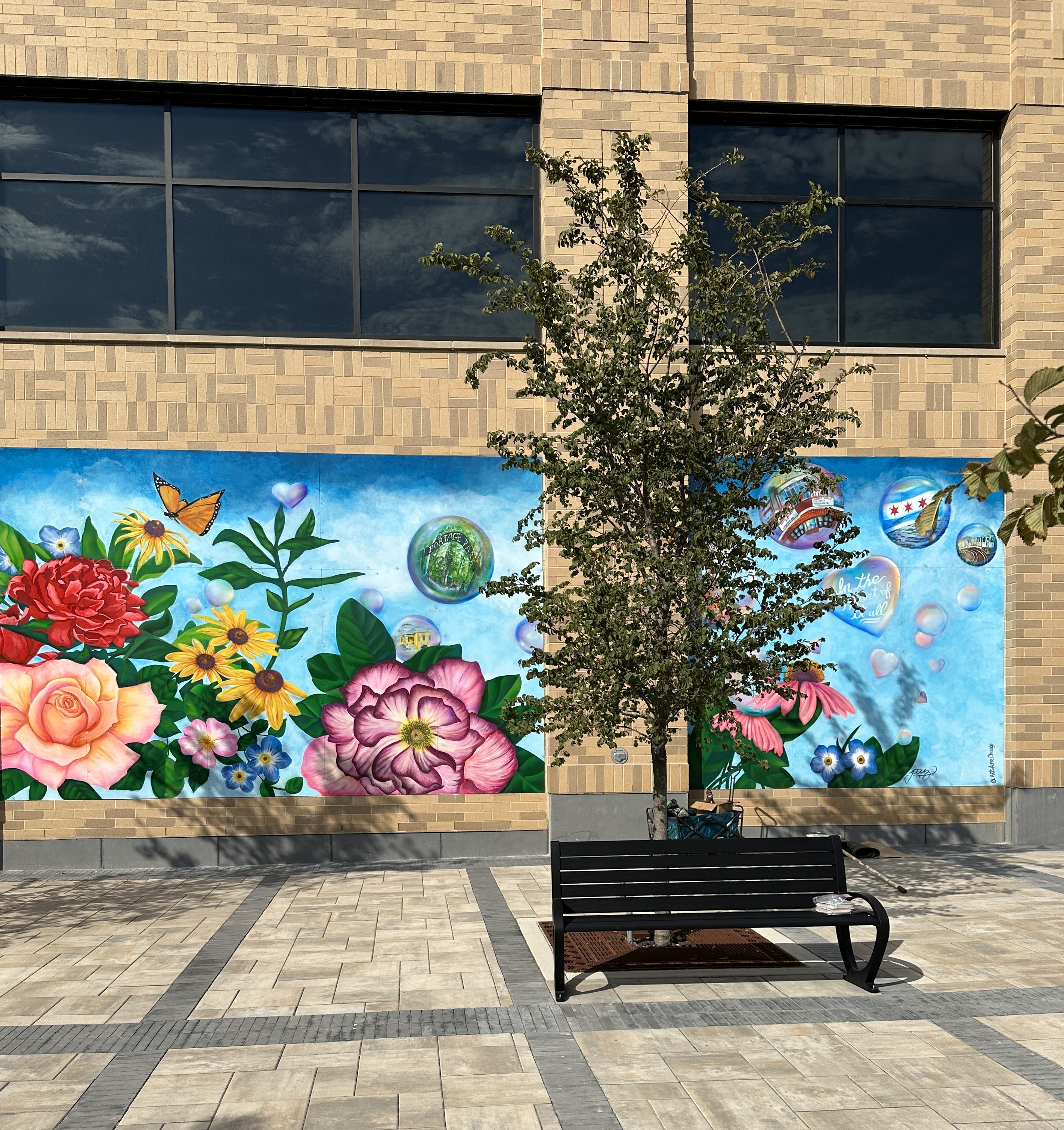 Arts Alive Chicago  had the pleasure of working with artist Christian Paz after he was selected by the Clarendale Six Corners LLC to design and paint their first mural . AAC prepped, supported and installed the work in October 2023.