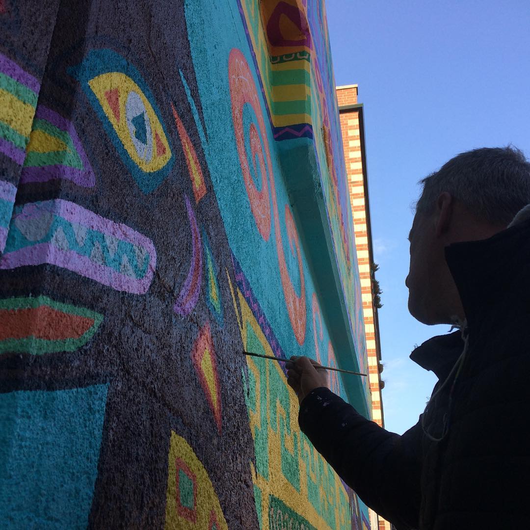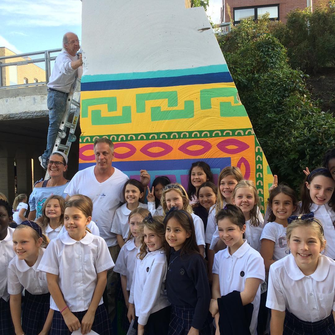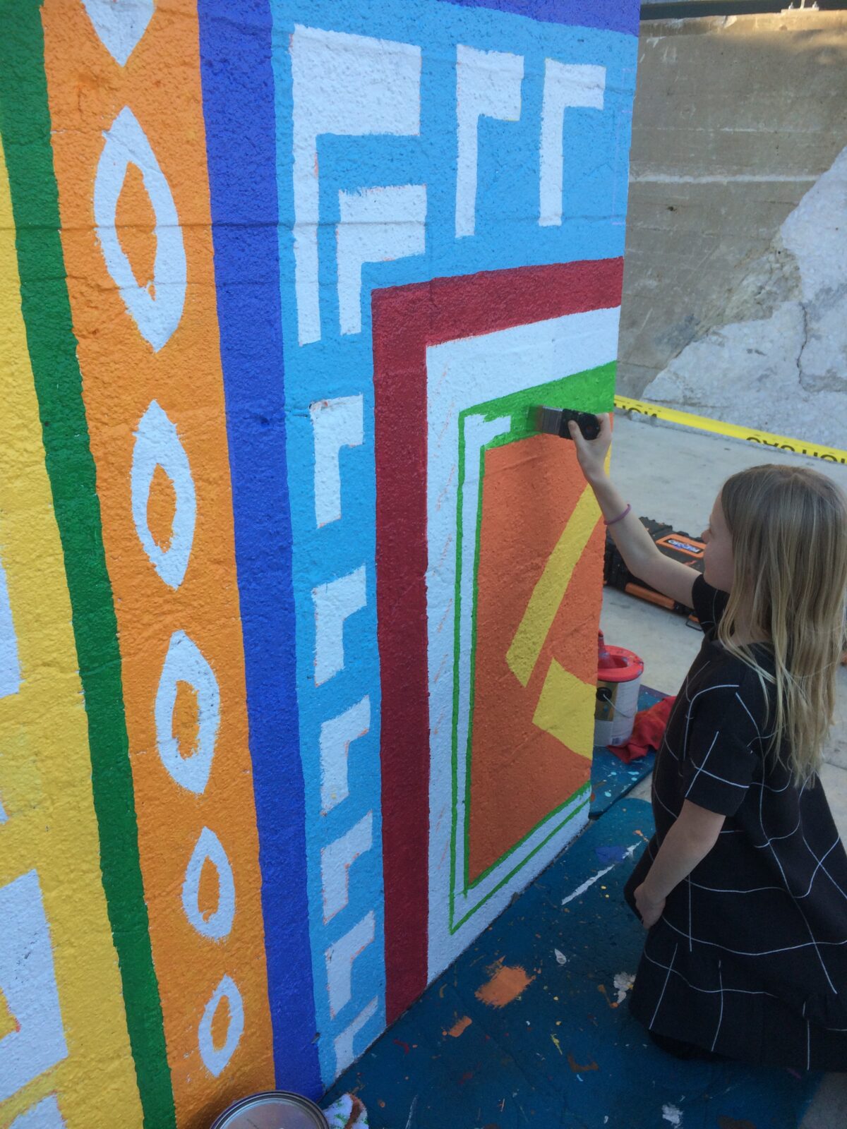 Young and old can’t help but smile and roll their heads back to look all the way up the wall as Tony Passero and his team begin his YOPA mural on Damen at the entrance to the 606. Who doesn’t feel better with all those colors dancing about?